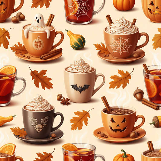 Tissu 100% Coton Oekotex - Motifs Tasses Thème Automne