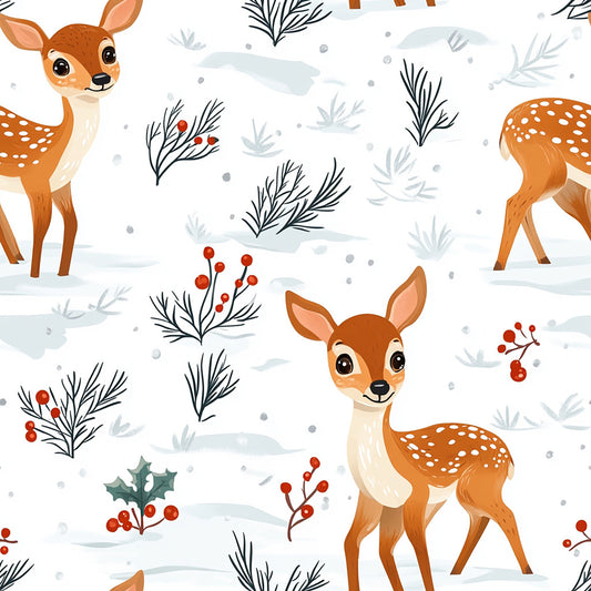 Tissu 100% Coton OEKOTEX - Thème "Petits Faons d'Hiver"
