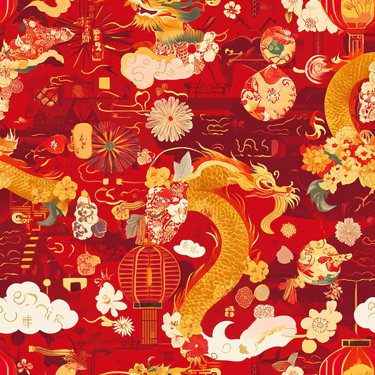 Tissu 100% Coton OEKOTEX – Motif Nouvel An Chinois