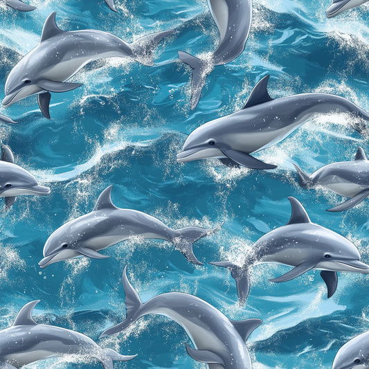 Tissu 100% Coton OEKOTEX – Imprimé Dauphins Marins