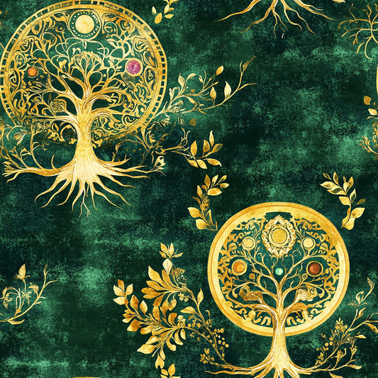 Tissu 100% Coton OEKOTEX – Imprimé Arbre de Vie Doré