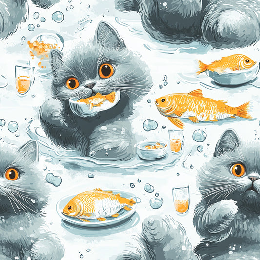 Tissu 100% Coton OEKOTEX – Imprimé Chats gris humour