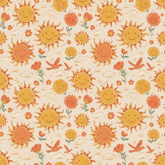 Tissu en coton Oeko-Tex – Motif Soleils Joyeux et Fleurs