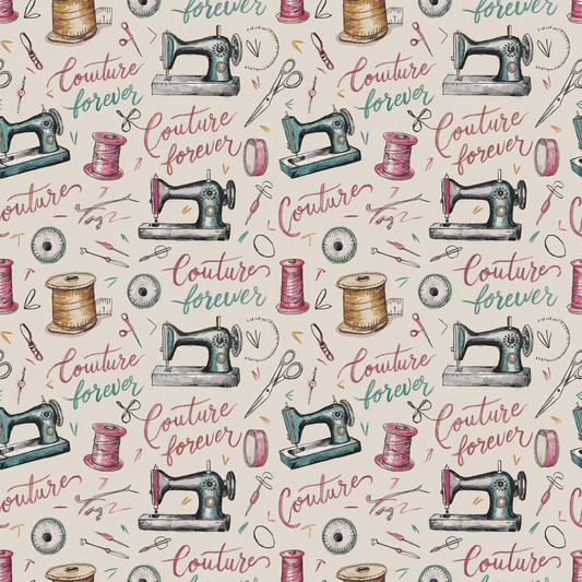Tissu Coton Oeko-Tex – Motif Couture Forever Vintage (Machine à Coudre & Accessoires)