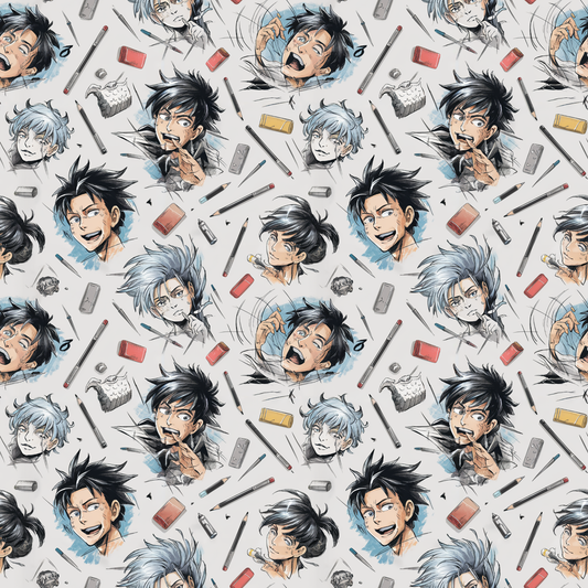 Tissu en coton Oeko-Tex – Motif Kawaii Dessin Manga Animé