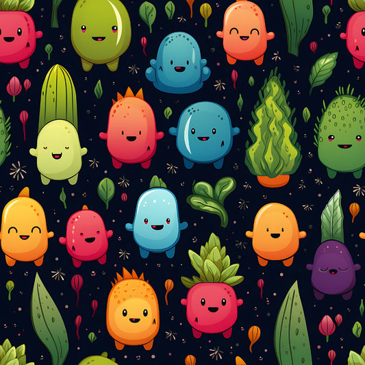 Tissu Enfant Légumes Rigolos Oeko-Tex 100% Coton