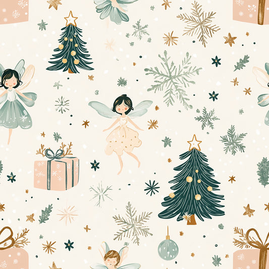 Tissu Écologique "Fées de Noël" – Magie et Féerie