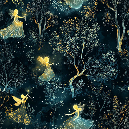 Tissu Écologique "Forêt des Fées Lumineuses"