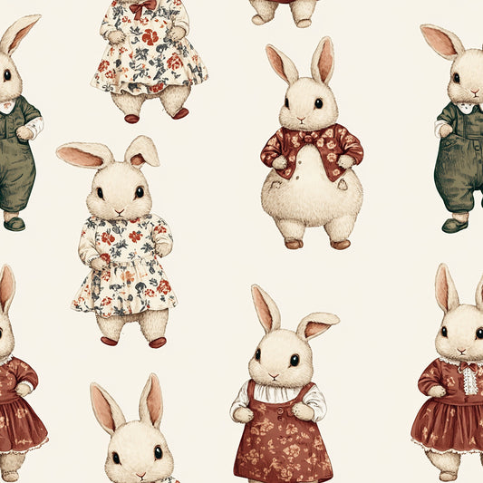 Tissu Écologique "Lapins Vintage"