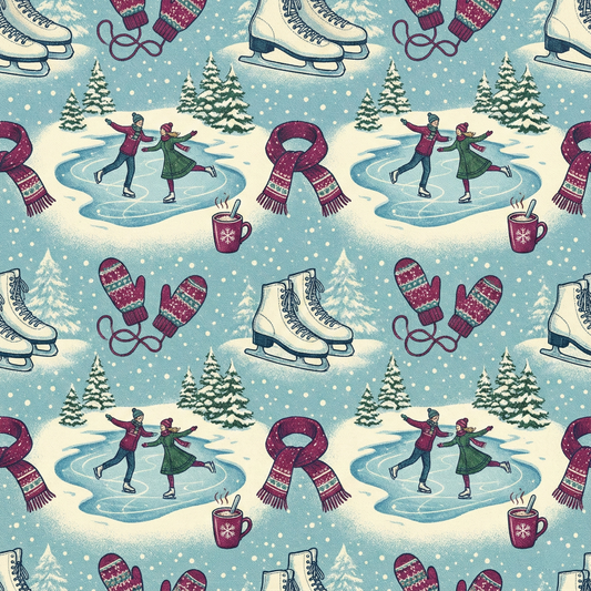 Tissu Coton OEKOTEX – "Hiver Patinage Artistique"
